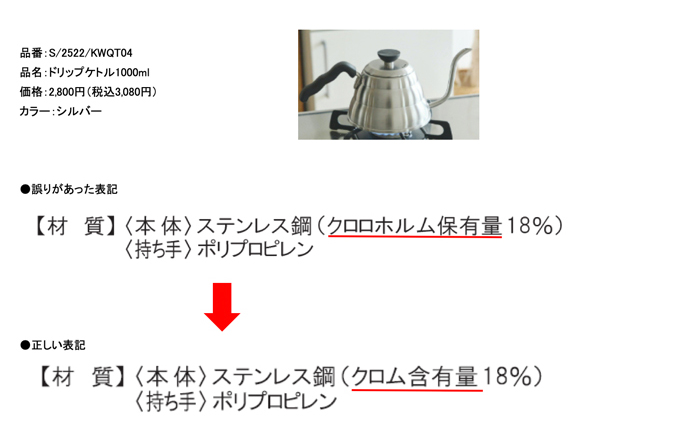 令和7年9月22日より、salut!各店舗およびPAL CLOSETで販売いたしましたドリップケトルにおいて、